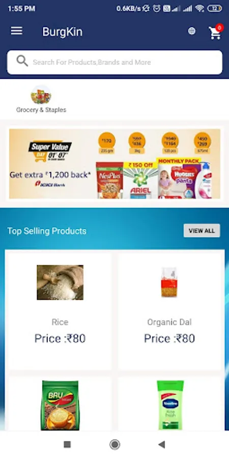 BurgKin- GroceryWala is leading online Local supermarket shopping app, made to deliver the grocery and essentials goods at your door step and saves customers precious time and money. Shop anytime, anywhere from a vast range of 500+ products including farm-fresh fruits and vegetables, groceries, home & household essentials, organic products, beauty and hygiene, imported and gourmet & more at the best prices. Enjoy hassle-free online grocery shopping and home delivery at just a click of a button.