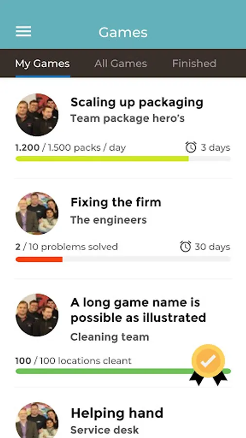 Progress per Team Challenge, Team Players see their own Scoreboard