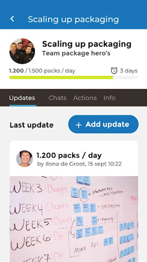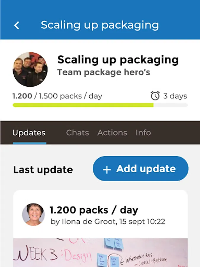 The OpenBook Business Savvy app is made for employees of Openbook.works and their external business coaches. It supports the dialogue between the team members, coaches and other Team Challenges. The teams keep track of the progress and take pictures of their updated Scoreboard and upload it to the app to inform everyone.