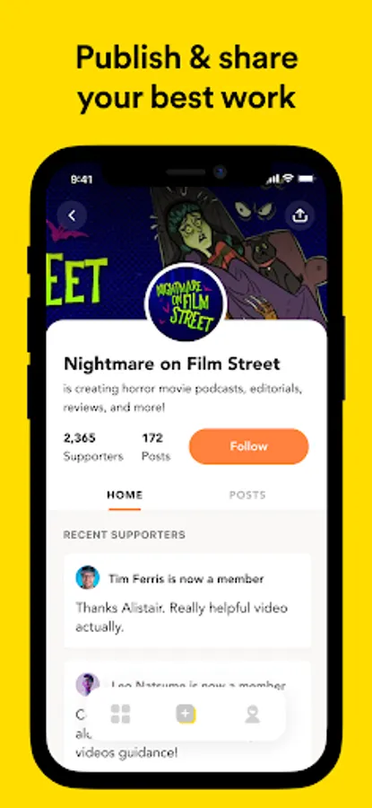 2. Discover new creators to follow and support.