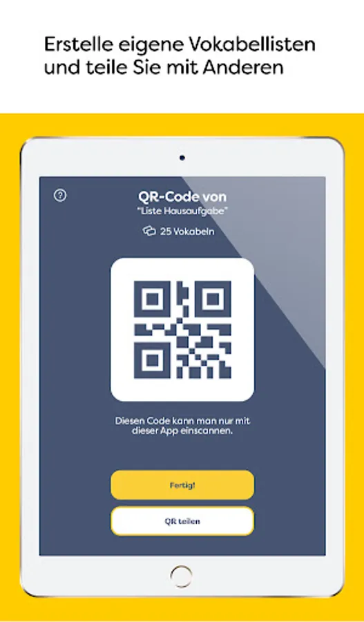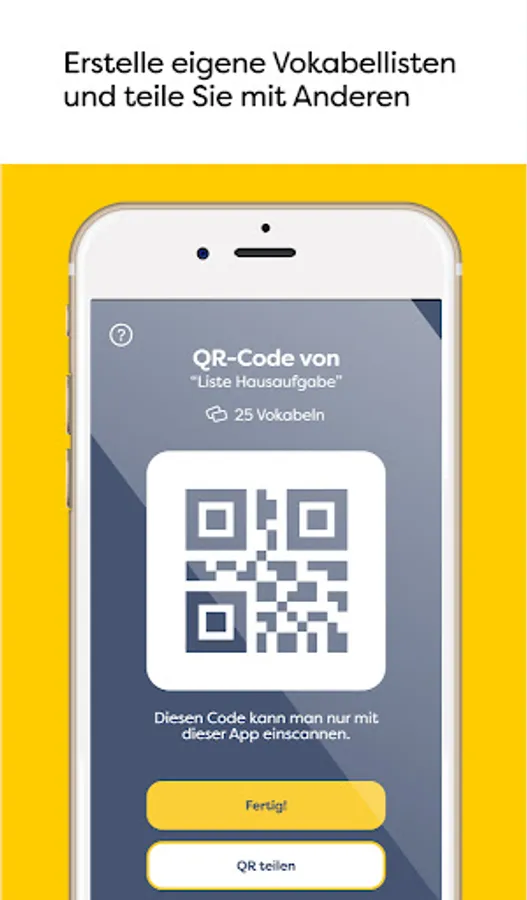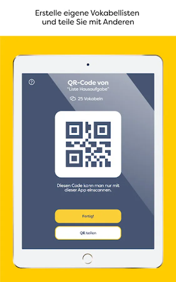 Create or edit your vocabulary lists as you need them and share them with others via QR code.