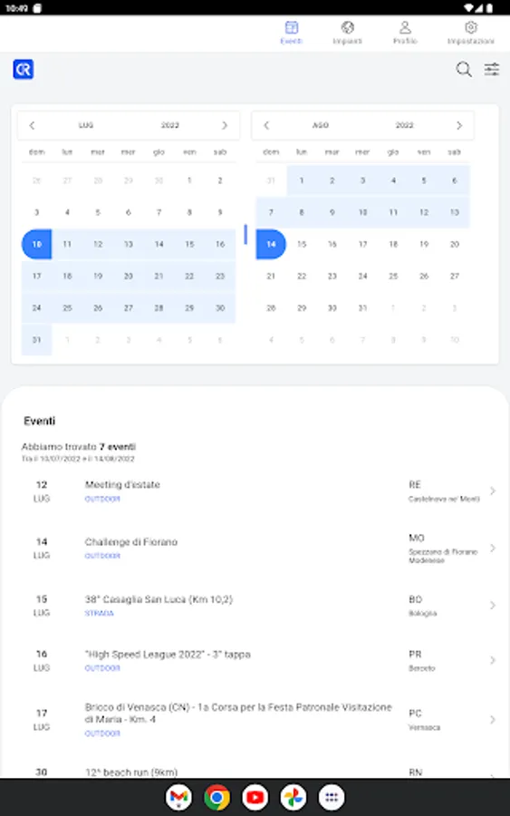CallRoom is the official app of Emilia-Romagna where you can search for upcoming events by race, filter events, view the map of the facilities, consult the opening hours, confirm your registrations for the races and much more!