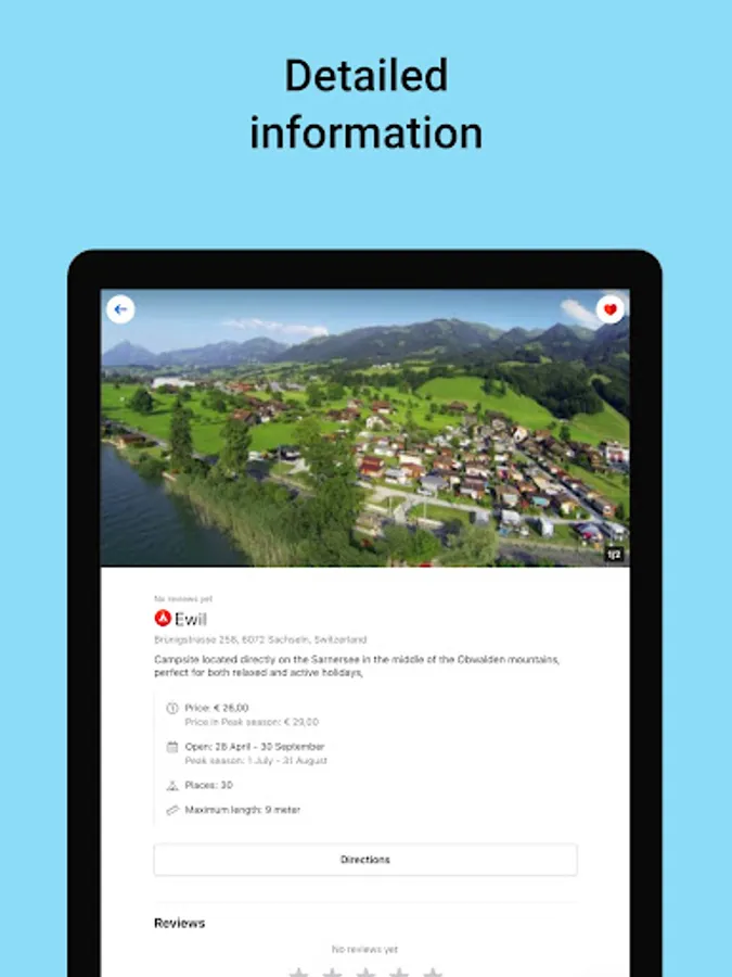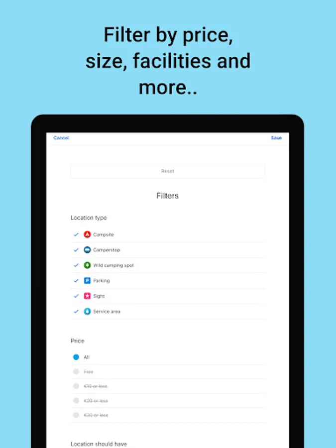 - Save your favorite camping location to plan your trip or create a log of the top campsites you want to visit