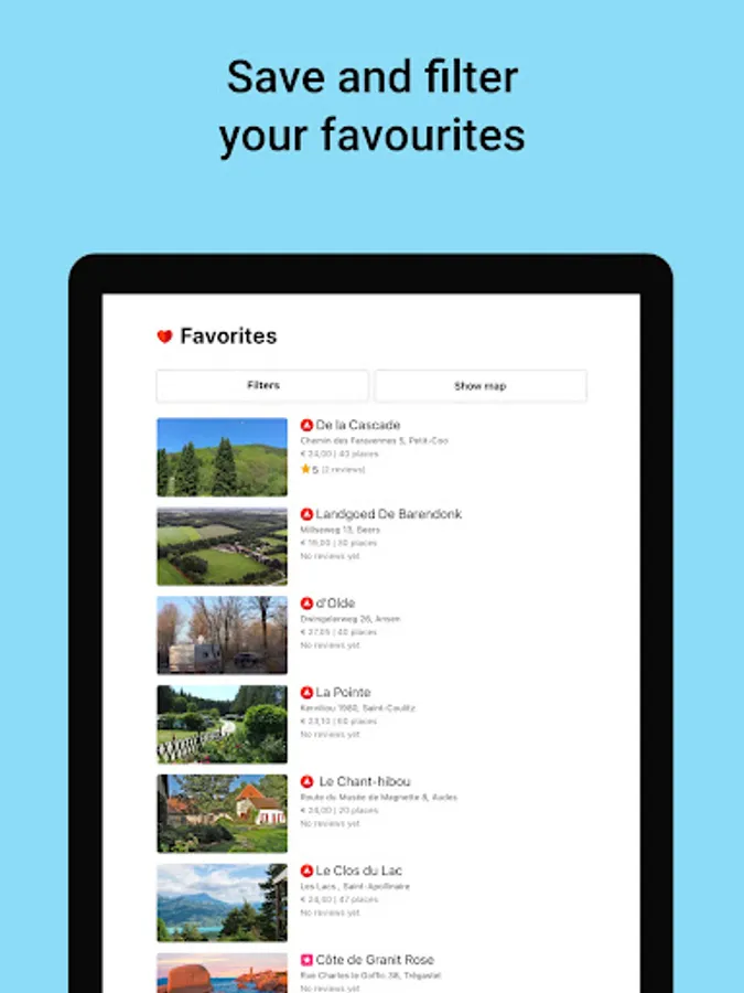 5. New: book your pitch directly with the Campy app. Unique spots from MyCabin and Campanyon
