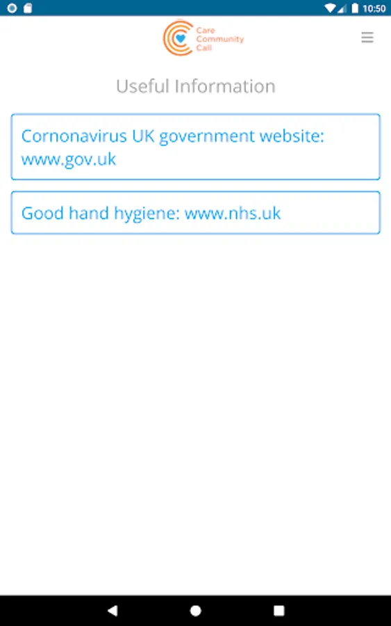 Care Community Call is an App that can be used by many different types of healthcare professionals to video call patients in a secure way from within the App. As a patient you will be able to download the App here but you can only access video calls if your own healthcare provider has chosen to use this App, and has given you a login and password that you enter on the opening page next to the words PATIENT. This means that there is a high level of security once you are both using the App. Once you are logged in you will be able to use this on an ongoing basis with your healthcare provider to receive video calls. Call history is saved within the Care Community Call Service however, all in App call messages are deleted every night to protect privacy for all involved. Any health information noted by your healthcare provider is recorded and held separately, out with the Care Community Call Service, by your healthcare provider.