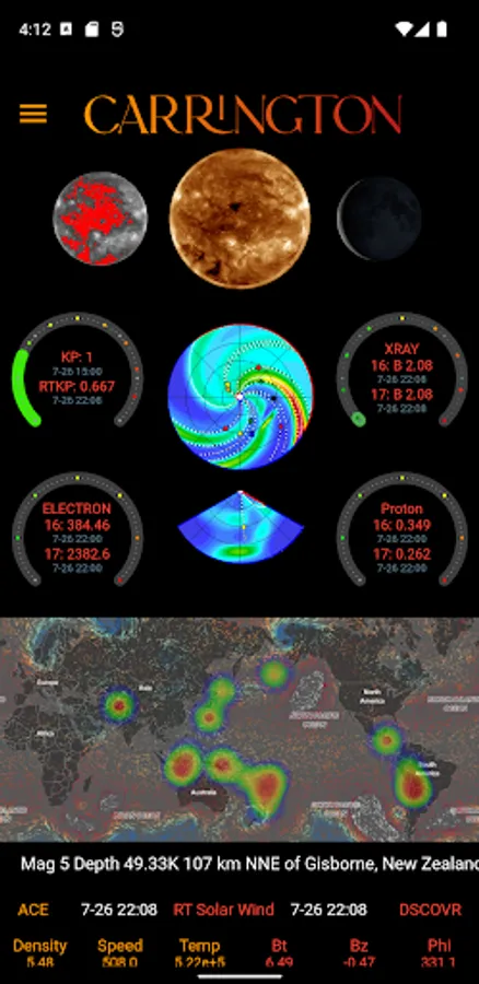 The Sun controls many things on Earth. In recent years the Solar and Space Weather monitoring satellites have shown that climate, weather and geologic systems here on Earth are influenced by the Sun's activities. This app provides some of the most complete real time satellite feeds and Solar images available in one spot. It also provides the fastest most complete alerts for Solar flares, geomagnetic activity, earthquakes, and more. If you are familiar with space weather or just learning you will find this app educational, informative and useful.