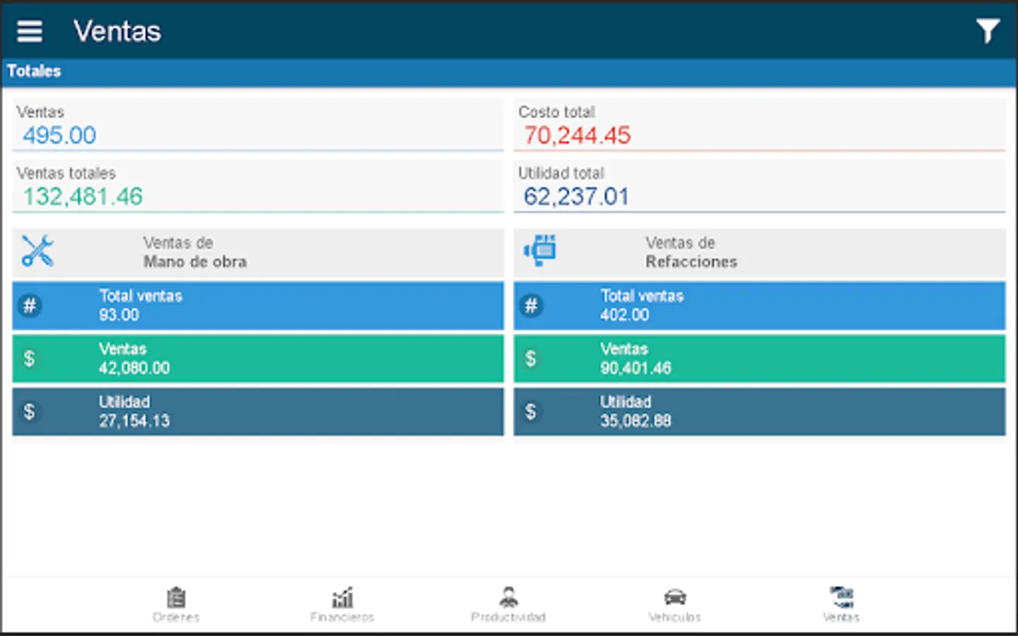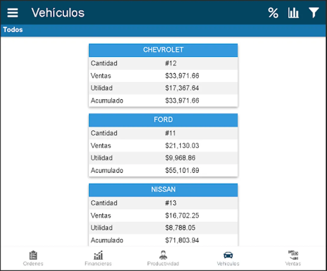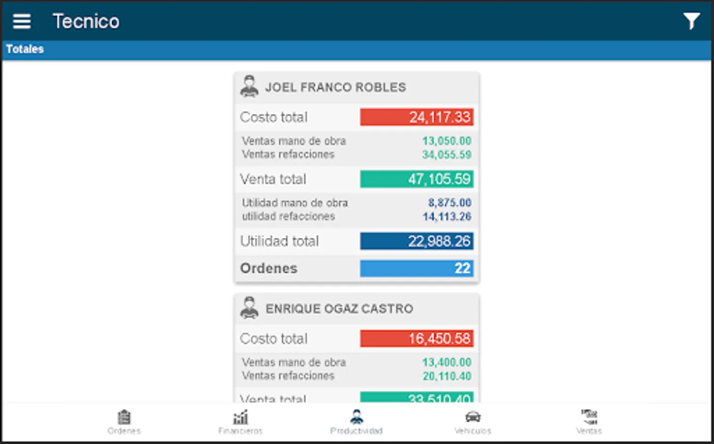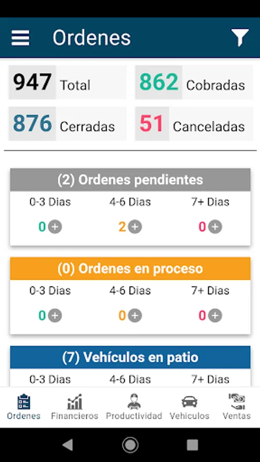 2) Automotive Service Orders Control Board. They are practically visualized and reported. They can be sub-totaled by branch and totaled by company.