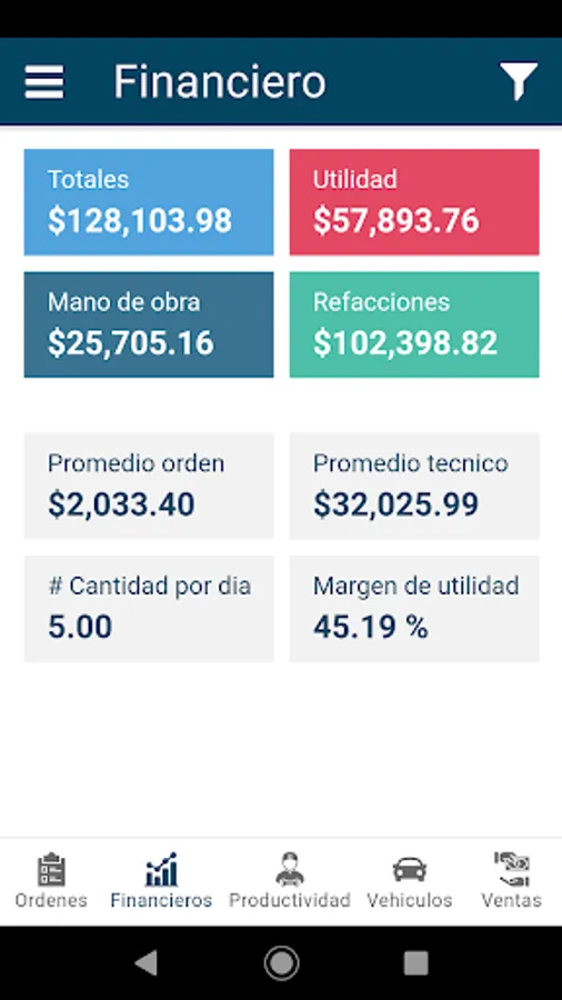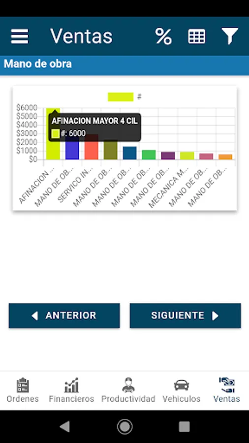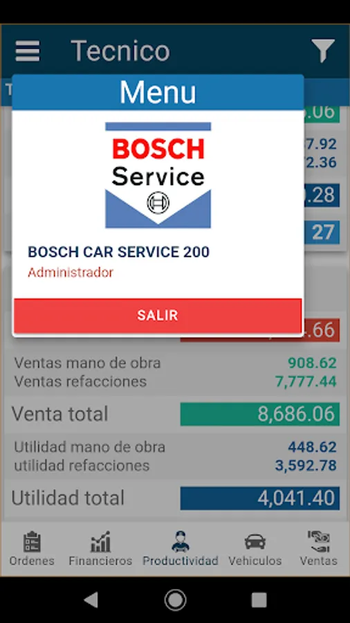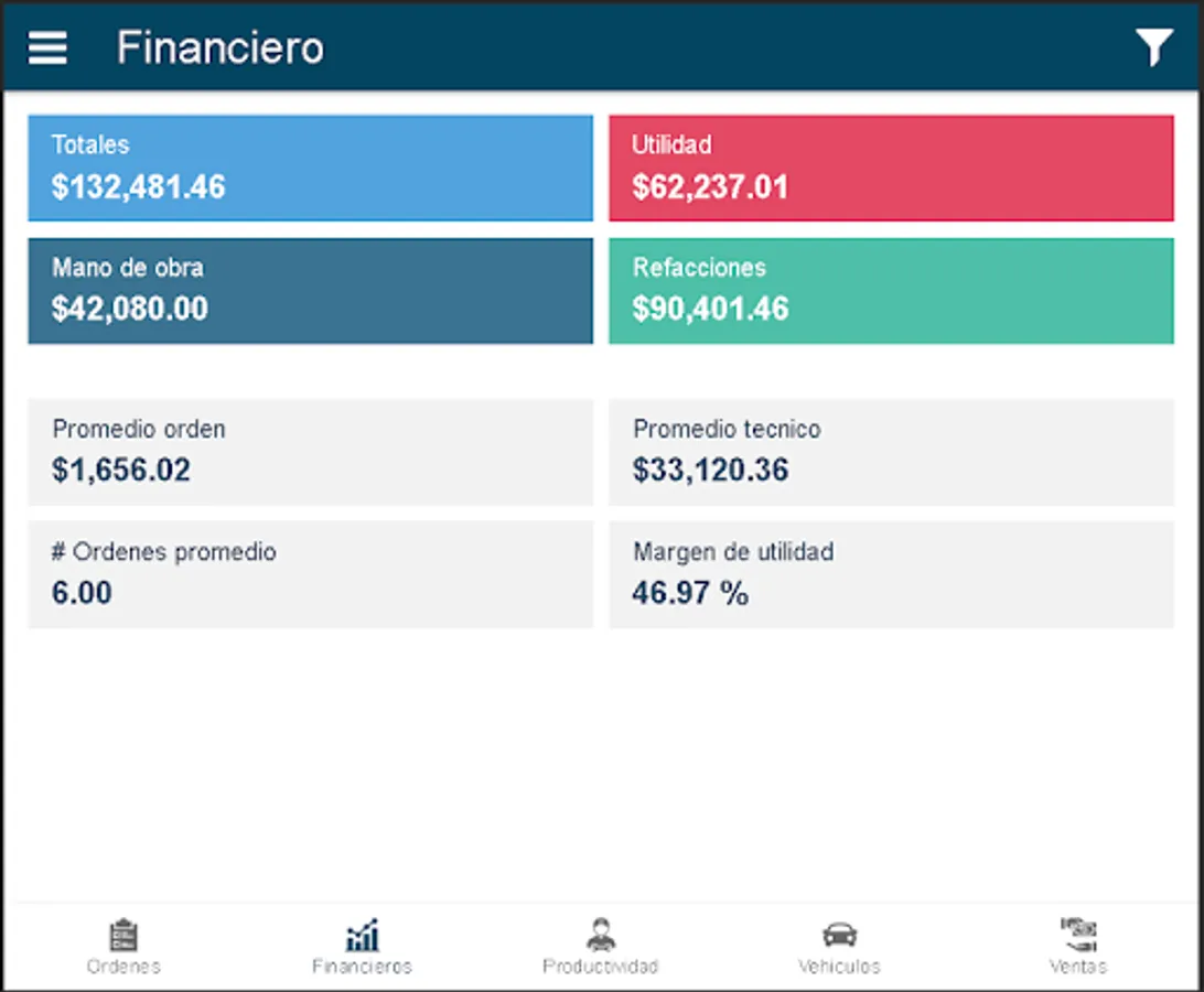 I.- Strategic and control dashboard, made up of two functionalities, the first with Key Performance Indicators (KPI's) and the second is for Service Order Control. Specialized for the management of automotive service workshops where the business is the sale of services with labor and spare parts.