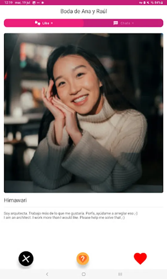 Celestina is a dating app for the participants of an event, like a concert, a wedding, or a party. It allows the participants of the event to rate each other and, if there is a mutual interest, they can interact through the app.