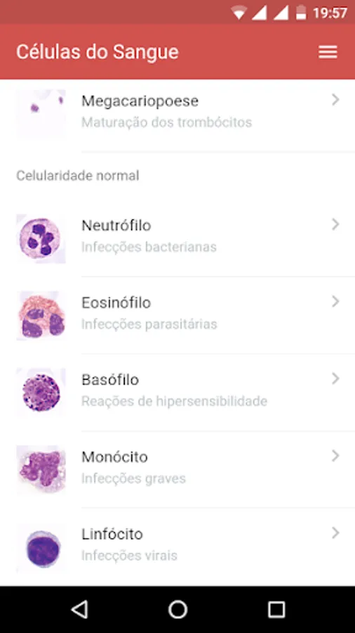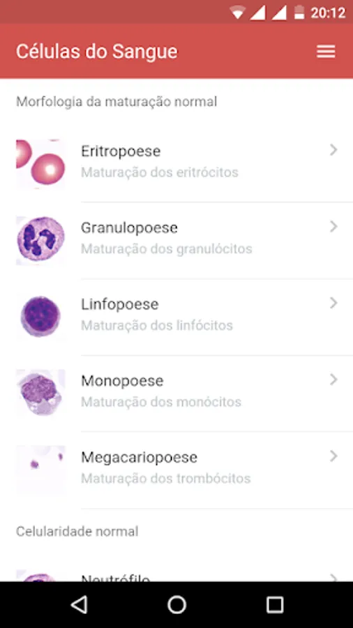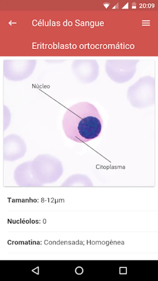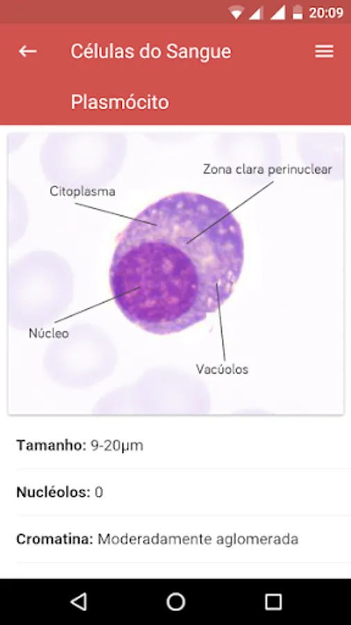 The application "Blood Cells" was developed for students and health professionals, for the rapid identification of the main characteristics of the morphology of blood cells, ideal for biomedicine students, pharmacy, biology and clinical analysis, completely free and without advertising.