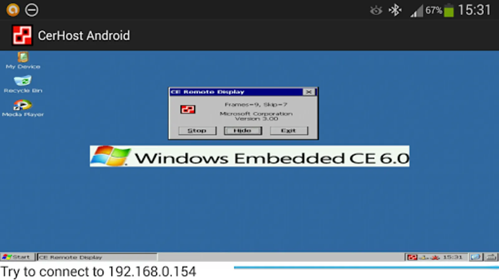 It allows you to connect remotely descktop mode on industrial or mobile devices equipped with Windows operating system WINCE 5 / WINCE 6 / WINCE 7 or Windows Embedded Compact.