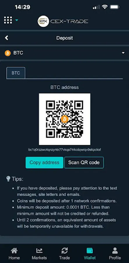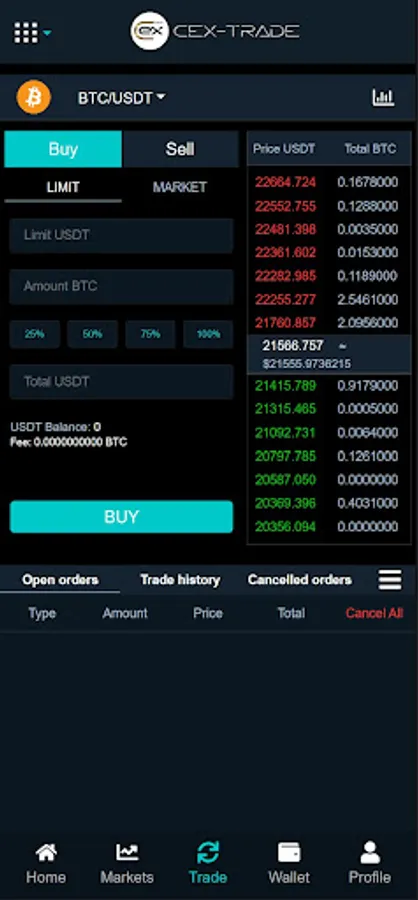 Cex-Trade mobile app allows you to buy, sell, exchange cryptocurrencies instantly anytime and anywhere. There are 20+ supported currencies including the top-performers by the market cap, BEP20, TRC20 and ERC-20 tokens.