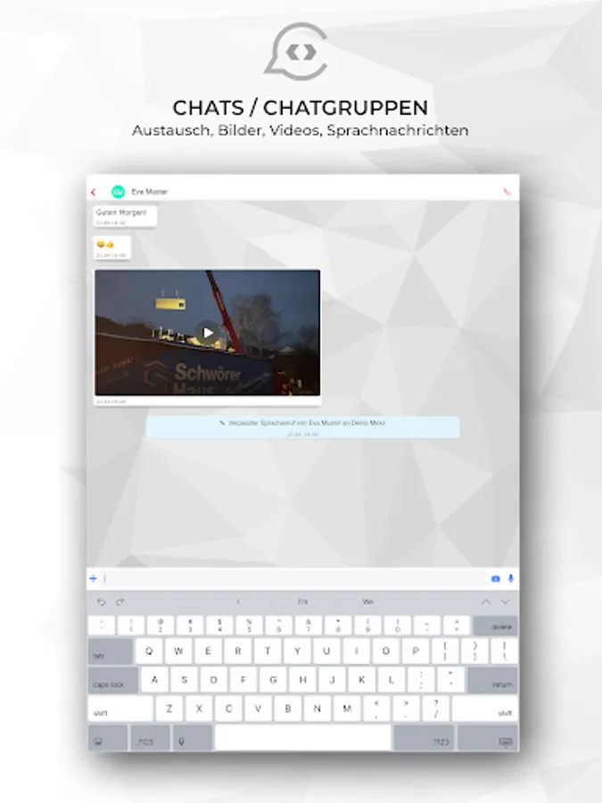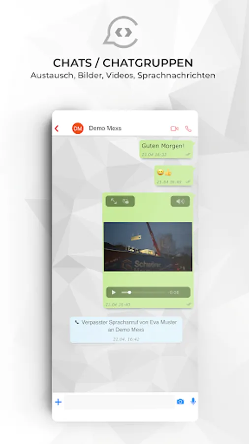 With the chatflow app you can chat, send news and exchange files. It is a German messenger according to the European data protection guidelines (GDPR compliant).