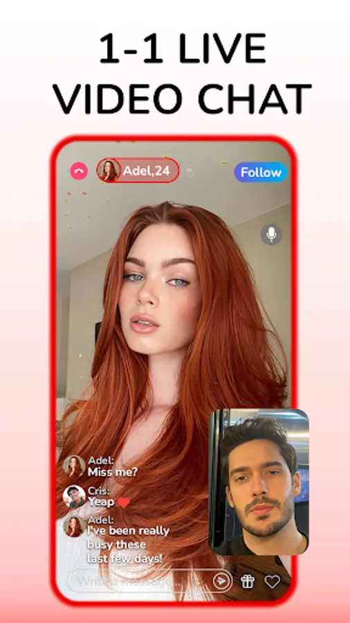 π€³πΌ 1v1 Video Chat: Instantly start a private 1v1 video chat with any online user for a seamless interactive experience.