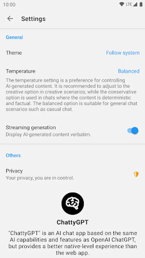 "ChattyGPT" is an AI chat app based on the same AI capabilities and features as OpenAI ChatGPT, but provides a better native-level experience than the web app.
