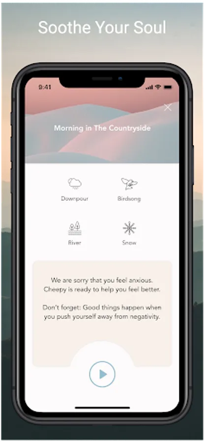 Listen natural soundscape mixed with soothing and creative effects on Cheepy. Get into the best state of focus for your productivity. Cheepy helps you unwind, set the right mood for meditation, work, study or get to sleep quickly.