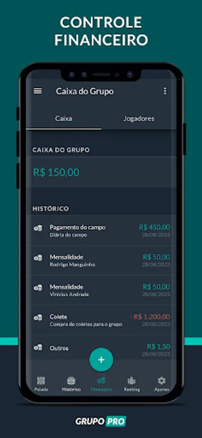 We know that to organize football matches it is not enough to just draw teams, make a game table, write down the score and find out who was the top scorer. You have to pay for the fields, buy a ball, and also pay for that barbecue for the crowd. To make life easier for peladeiros, Chega+ has financial control. All it takes is a consultation to find out who is up to date and who is stalling when it comes to paying.