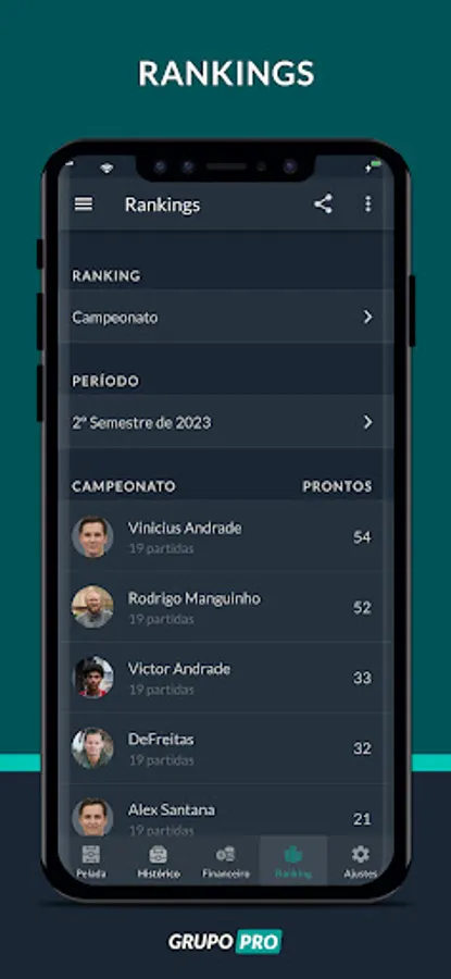 Don't waste any more time when it comes to selecting teams and putting together the game schedule. With the team draw in Chega+ it is possible to draw based on the positions and scores of the peladeiros, preventing the artillery from being all on one team.