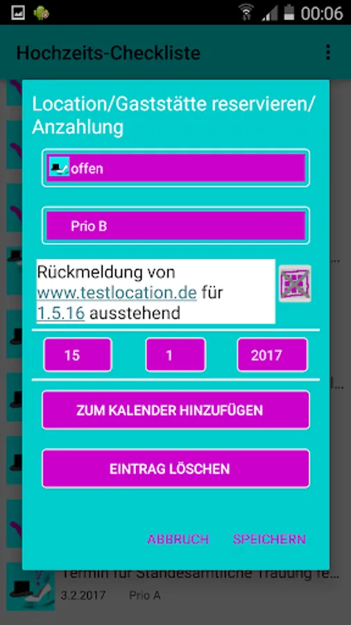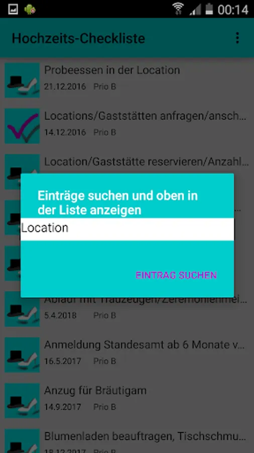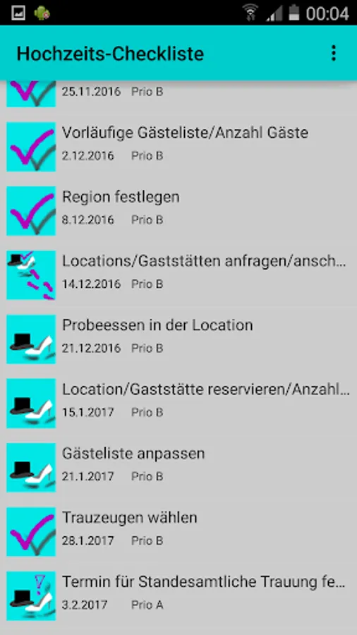 List can be sorted and automatically align the wedding date by date, name, status or urgency. Dates and technical descriptions can be easily transferred into the calendar.