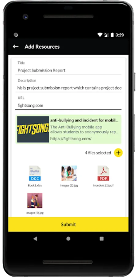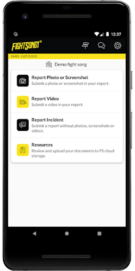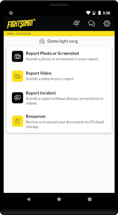 3. Student Users download The FightSong!® Student App on their phone or mobile device and can use this app to report anything describing an action that has happened directly to them, someone else, or it can simply be a request for emotional support and counseling.