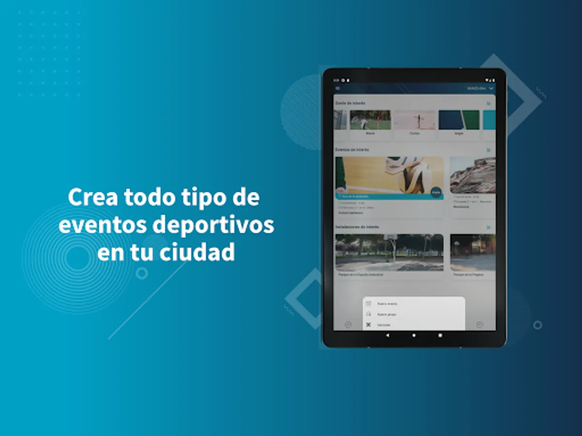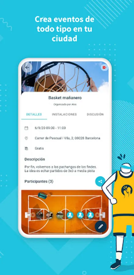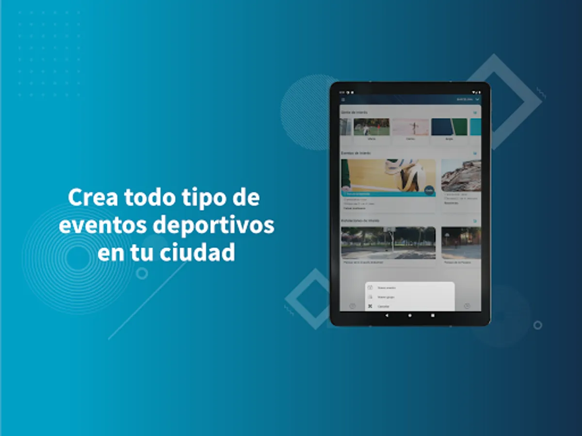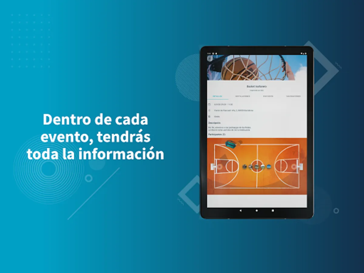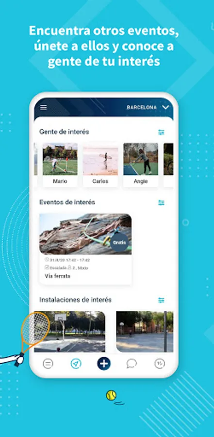- Create and organize events in private or outdoor facilities of the following sports: soccer, 11-a-side football, futsal, basketball, volleyball, running, cycling, paddle tennis, yoga or workout