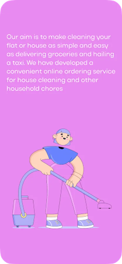 Our aim is to make cleaning your flat or house as simple and easy as delivering groceries and hailing a taxi. We have developed a convenient online ordering service for house cleaning and other household chores