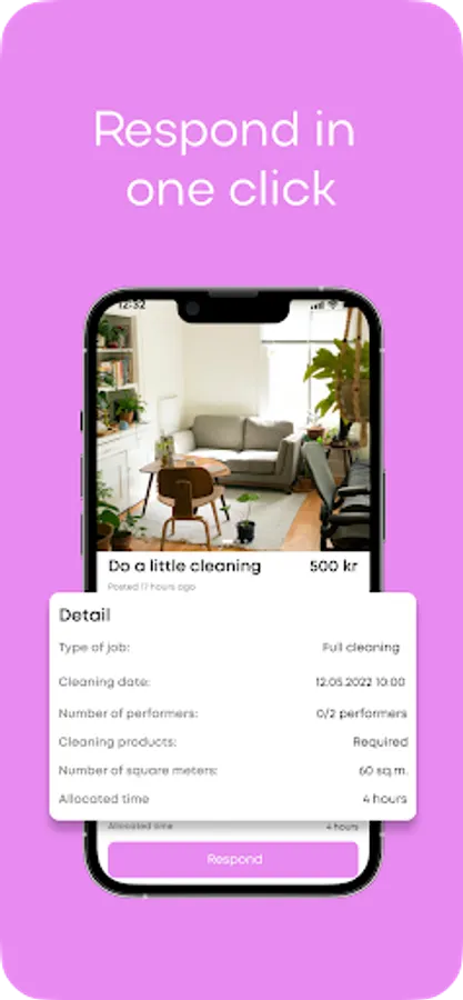 Do you want to take cleaning orders and earn money? It is quick and easy. Just pass the identity check, provide the requested documents and take orders. The first order for new users is free. For the following orders the price is 499 kronor a month.