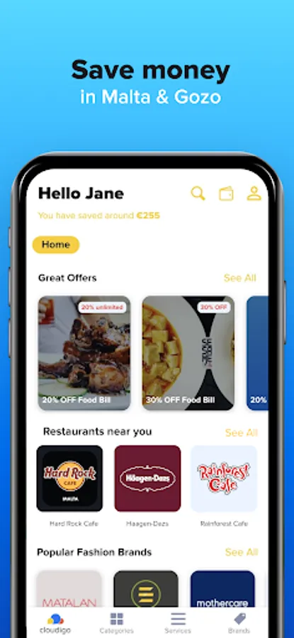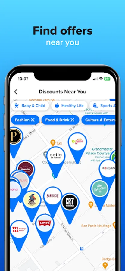 You can search for the closest savings near you, and instantly use a discount or a voucher. You can also save the ones you like and use them later whilst offline.