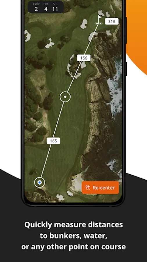 - Easily measure GPS distance to bunkers, water, trees or any other point on the course.