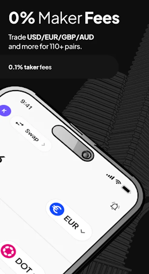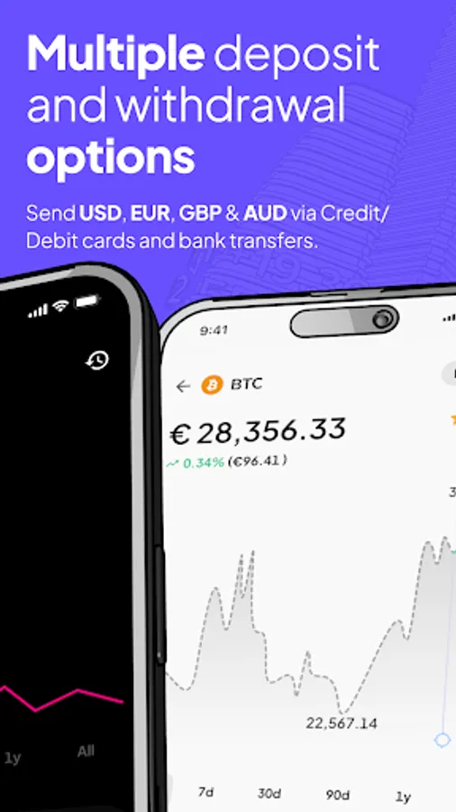 Fiat deposits & withdrawals in AUD, EUR, GBP and USD.