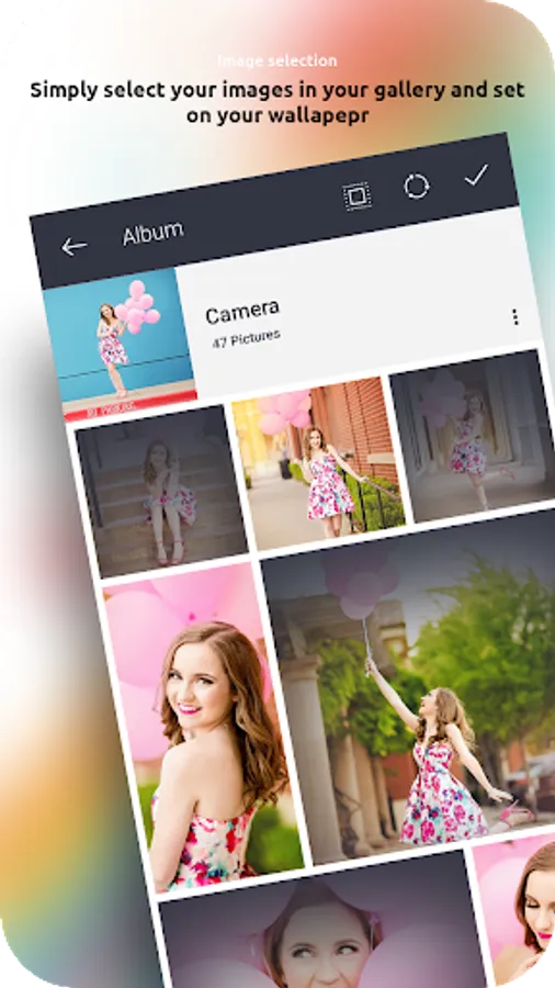 My Collage Live Wallpaper is allow to set your photos with grid as a wallpaper.My collage live wallpaper shows your photos in a beautiful live wallpaper collage with several layout styles to choose from. Add entire albums and folders, apply gorgeous photo effects to customize the live wallpaper to your liking. Make your personal Live Wallpaper in seconds!