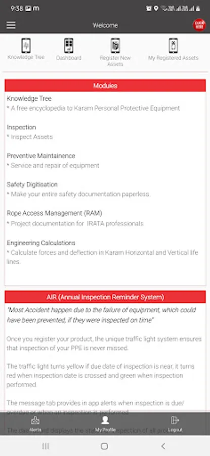 Kare Karam ME proudly introduce its Asset Integrity Software Kare Karam ME CONNECT, which is a cloud based mobile application that provides a one stop safety solution in creating awareness for the use of safety equipment , inspecting equipment , and performing periodic maintenance .It enhances the life of your equipment and prevents accidents due to failure of safety equipment and machines.