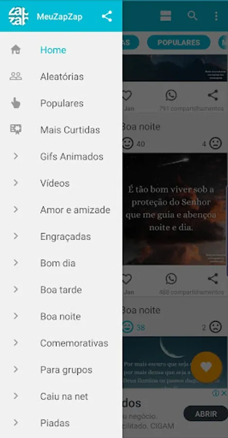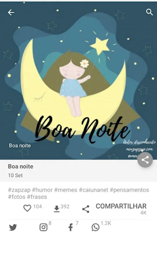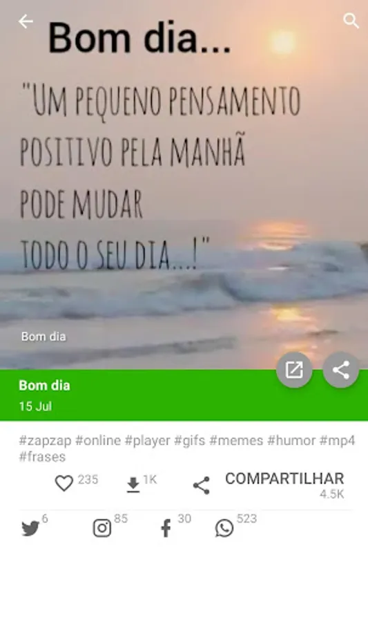 Practically you can share images with just one click, browse the categories, choose the desired image and the desired social network.