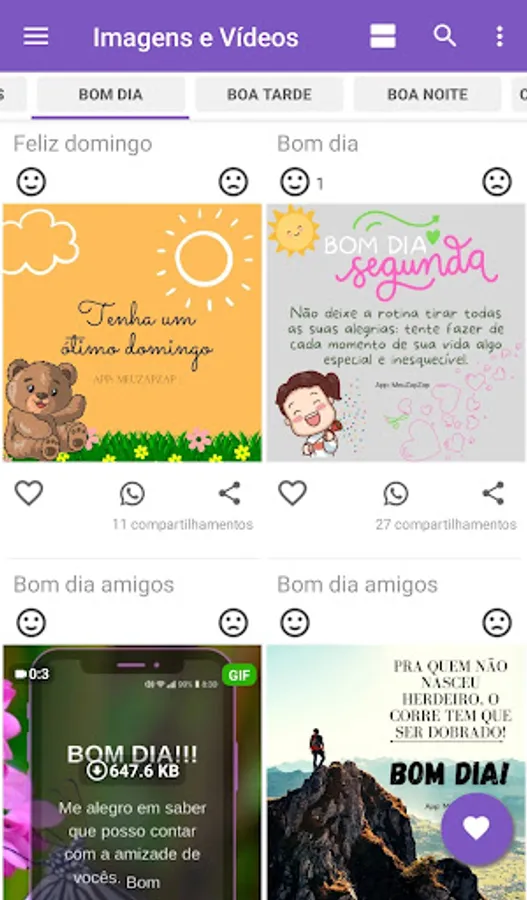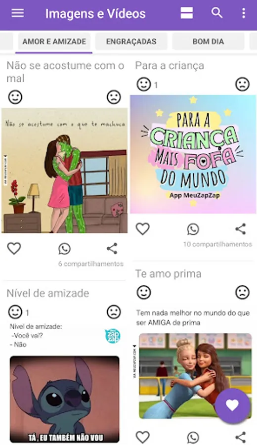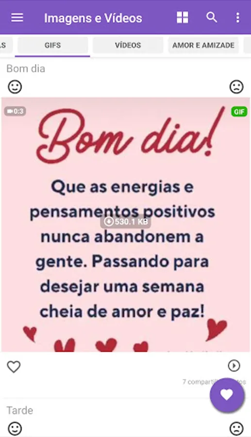 You can save favorite videos and images, gifs, about greetings, phrases, status, commemorative dates, creativity and share with one click.
