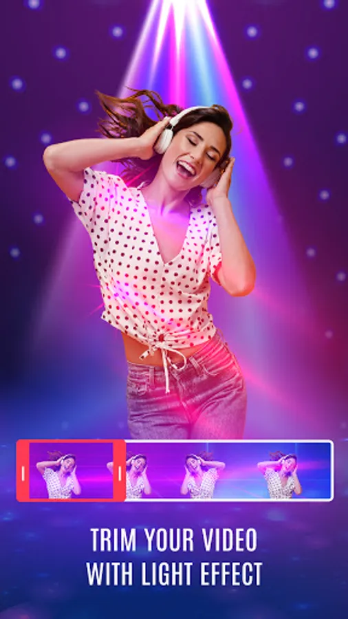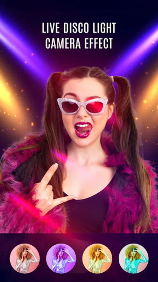 Record video with disco lights effects in live camera mode with Disco Lights Live Camera Effect video editor app. Now you can convert any video from your device to disco light video, select video from your gallery and make any disco light effect on it.
