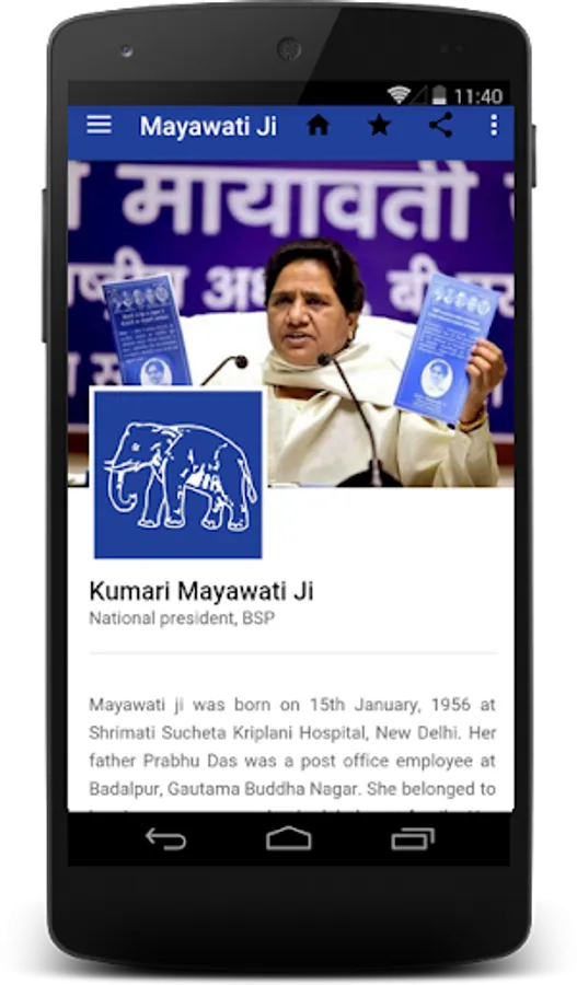 Mayawati Ji is an Indian politician who served four terms as the Chief Minister of UP. She is the national president of the Bahujan Samaj Party (BSP), which focuses on a platform of social change to improve the lives of the weakest strata of Indian society — the Bahujans or Dalits, Other Backward Classes, and religious minorities.