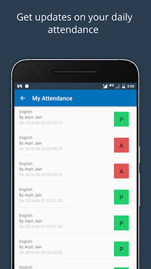 2) ‘Attendance’: Moving student’s attendance from manual registers to cloud, helping in digitization of process. Report and stats will be visible for college staff and students.
