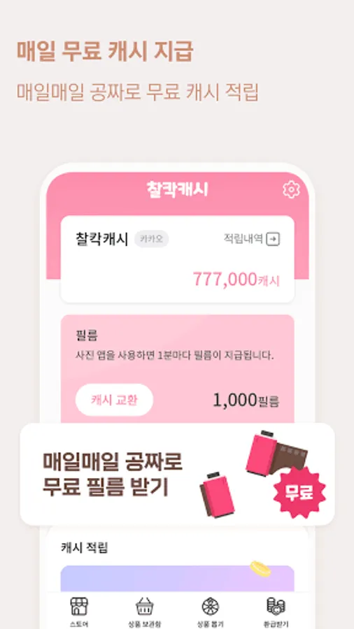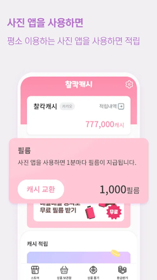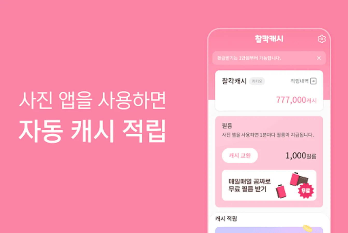 평소에 사용하는 사진앱 사용하면 캐시가 적립됩니다.