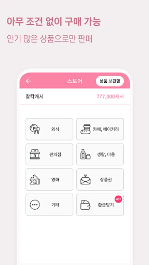 적립된 캐시로 언제든 스토어 쇼핑 및 환급을 받으세요!