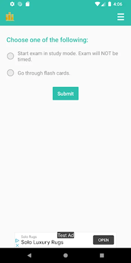 The app has 2 modes: study mode, and flashcard mode. In study mode, the exam will not be timed and you will see the answer and explanation right after answering a question. In flashcard mode, you will be able to go through flashcards as well as grade yourself.