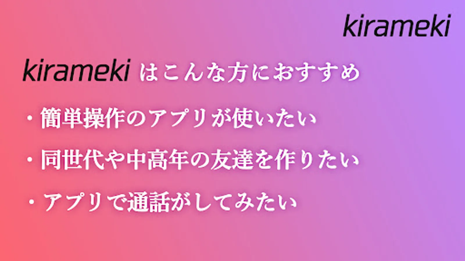 ・ I want to meet people in their 50s and older who are excited about talking with a middle-aged video call app