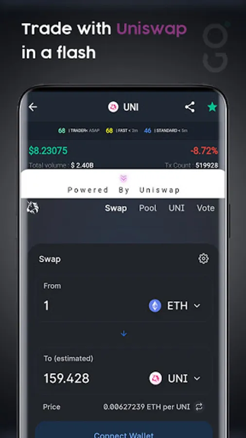 GoSwapp is the first defi app to bring the Uniswap And Pancakeswap trading experience to mobile phones. GoSwapp gives users the ability to track the performance of their favorite tokens and manage their trades from anywhere in the world.