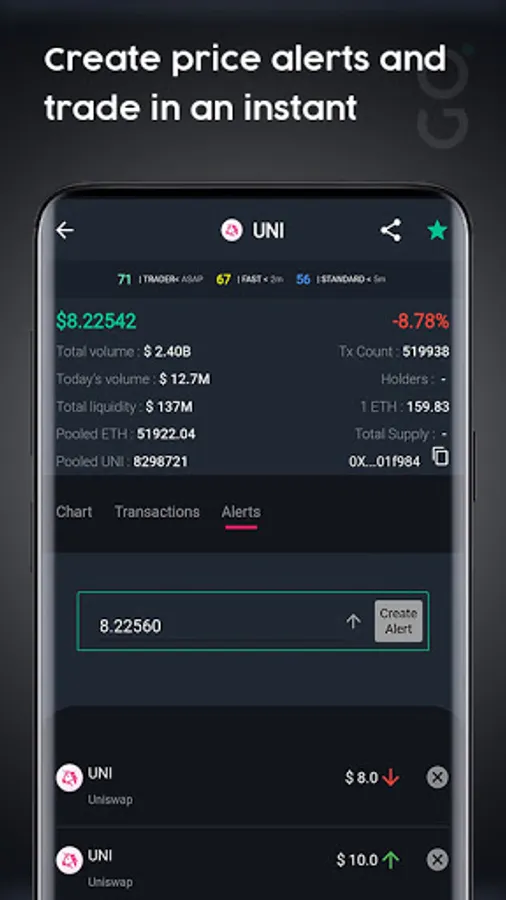 * Price Alerts: Set price alerts for your favorite tokens and get notified in real-time when the token hits your preferred price target.