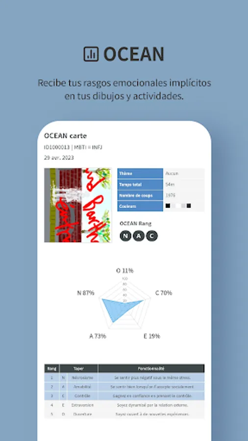 -Provides your OCEANS index represented by each of your drawings in one minute.