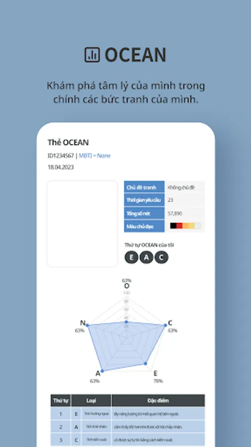 - Provide your psychological analysis report for free through pictures with figures of OCEANS.