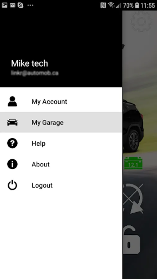 • Current vehicle status, Battery level and MyCar device signal strength