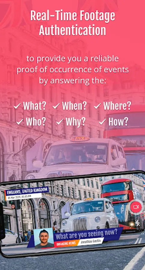 myScoop combats the spread of misleading footage. The myScoop camera automatically authenticates the date, time, and location of the captured footage, and add watermark for credibility and copyrights protection.
