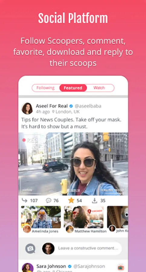 The myScoop app is a storytelling platform and a marketplace where you can share genuine mobile footage and earn money for every download.