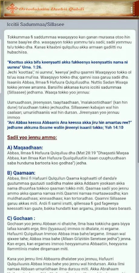 Ortodoksiin Deebii Qabdi ( orthodox has an answer ) ( ኦርቶዶክስ መልስ አላት ) an app for orthodox tewahido believers.
