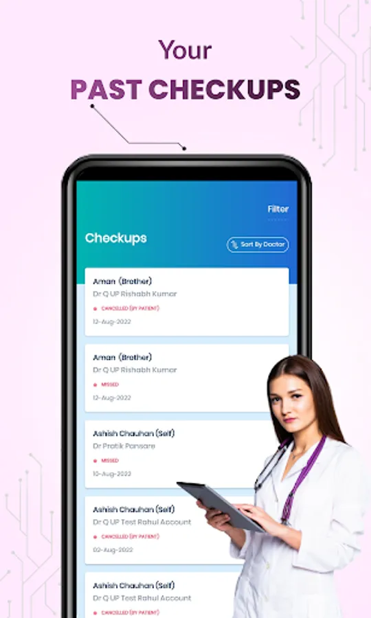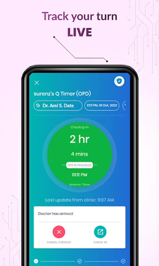 * We have an algorithm implemented which helps you track "approx time remaining for your check up to arrive " minute by minute to handle real time scenarios.